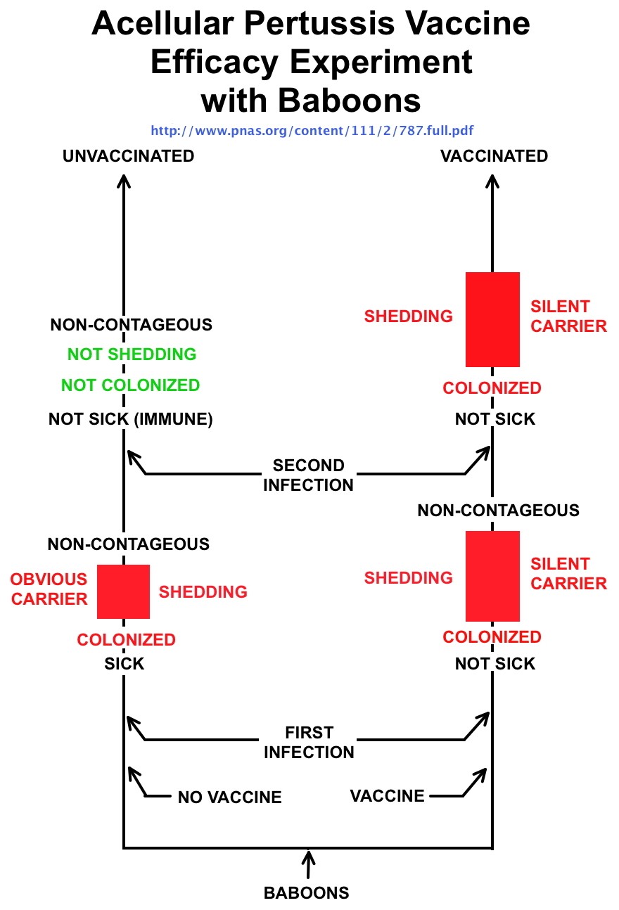 - Pertussis vaccine danger to immunocompromised -- Baboon study (diagram)