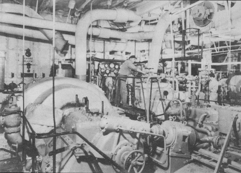 below, the forest of pipes and valves in engine room of same vessel.
