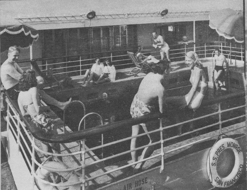 Swimming pools like that of the American president Lines' President Monroe, above, are found on many passenger-cargo vessels;
