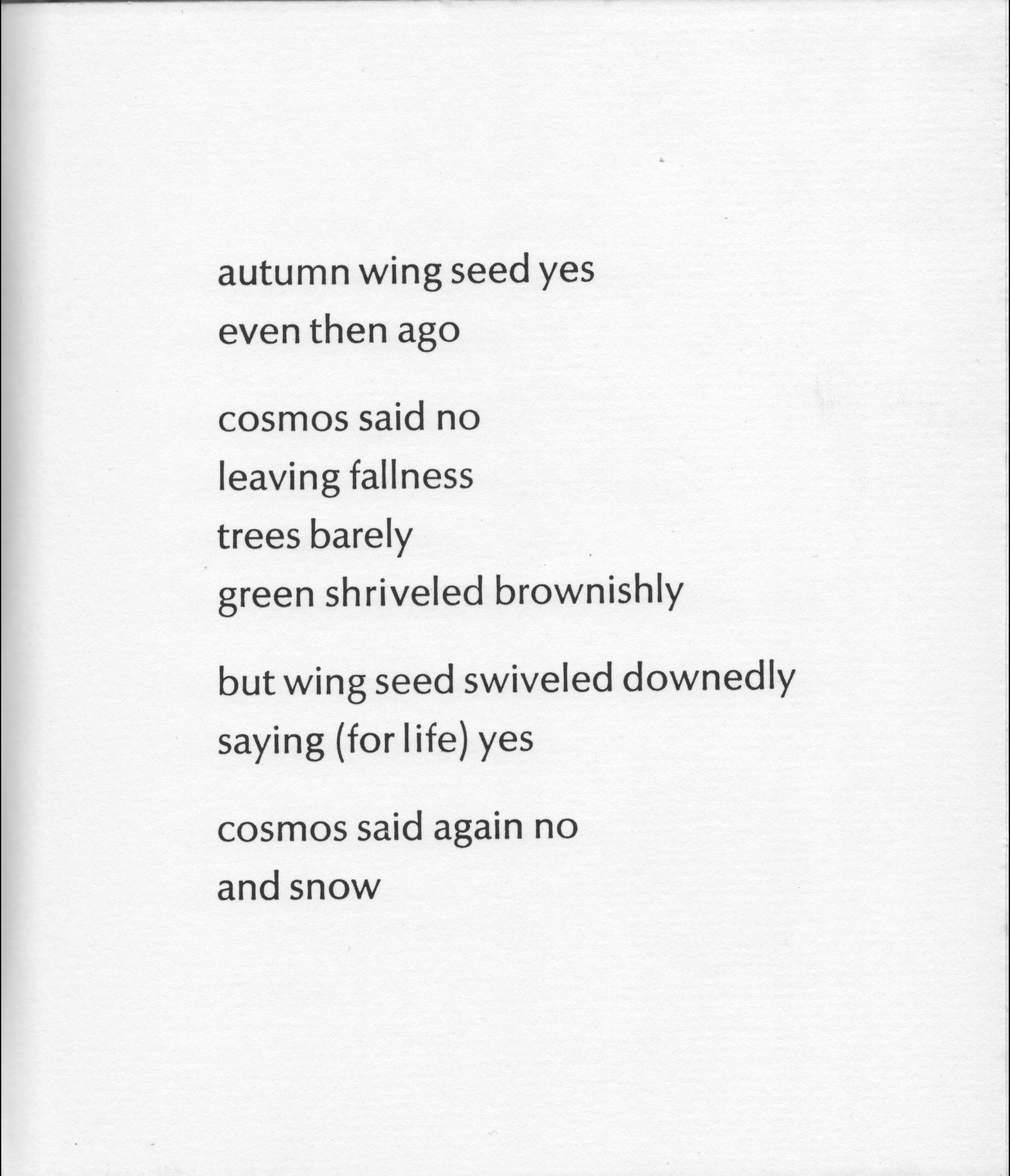 cosmos said no leaving fallness trees barely green shriveled brownishly