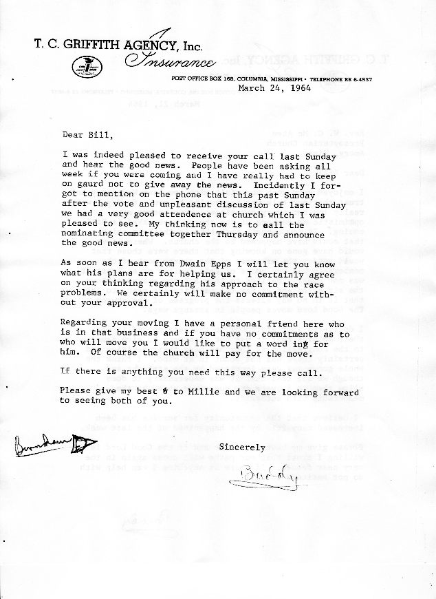 I was indeed pleased to receive your call last Sunday and hear the good news. People have been asking all week if you were coming and I have really had to keep on guard not to give away the news. Incidently, I forgot to mention on the phone that this past Sunday after the vote and unpleasant discussion of last Sunday we had a very good attendance at church which I was pleased to see. My thinking now is to call the nominating committee together Thursday and announce the good news.